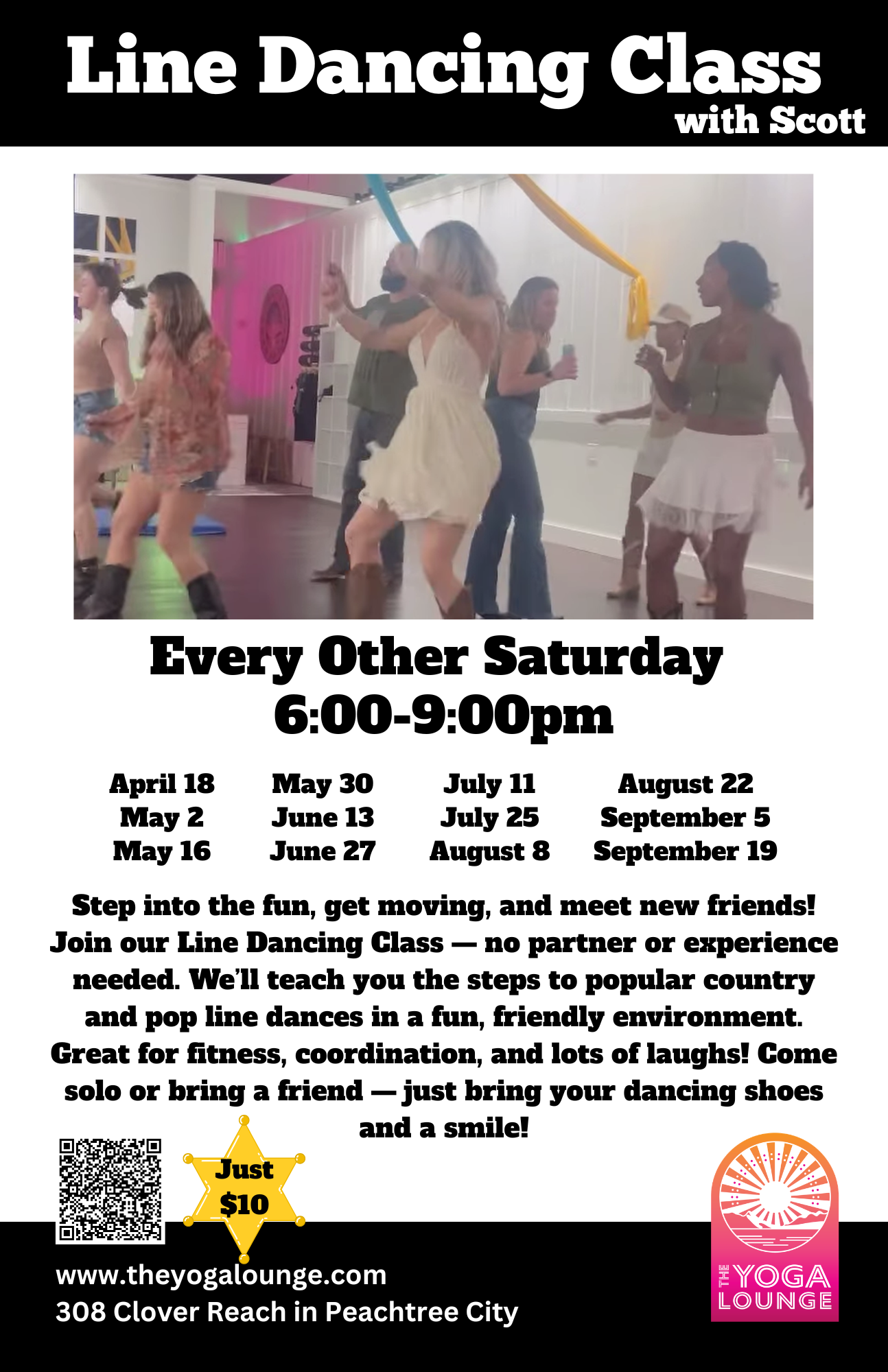 Back to All Events Line Dancing Class Saturday, April 18, 2026 6:00 PM 9:00 PM Google Calendar ICS Book April 18th line dancing class now